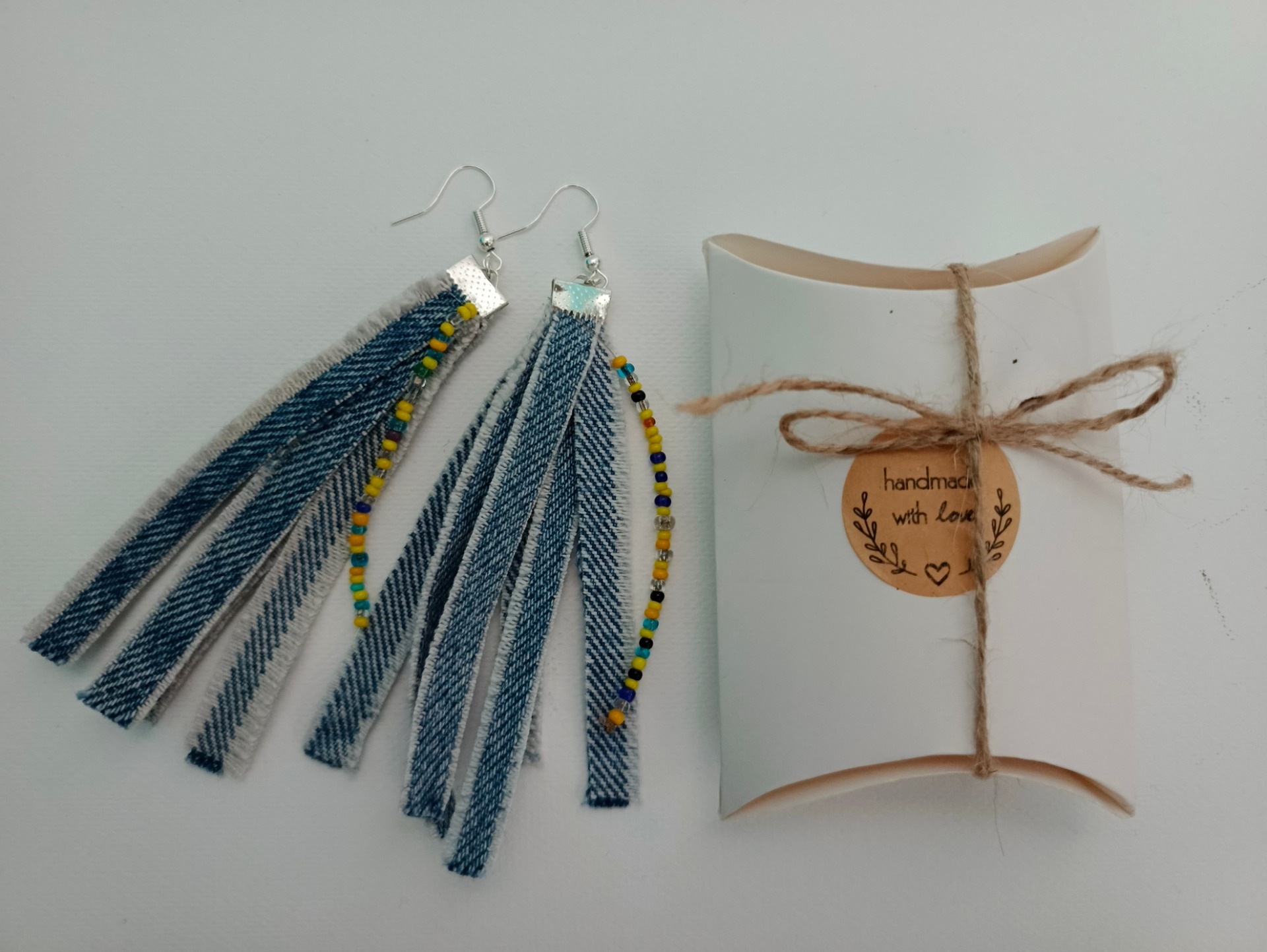 Dárkové balení v ceně: Náušnice vám přijdou v krásné papírové krabičce převázané jutovým provázkem s nápisem „Handmade with love“. Ideální jako dárek!
