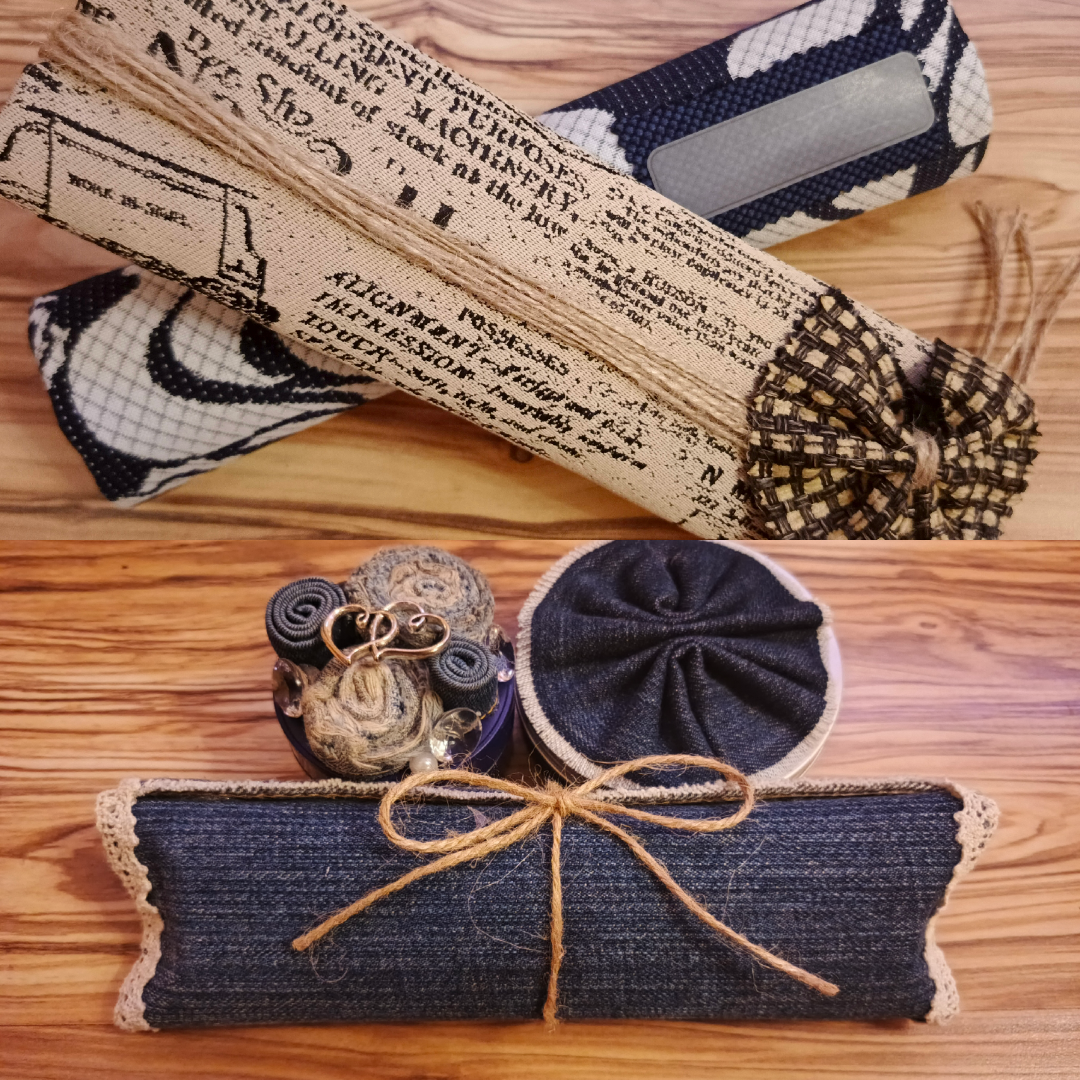 „Proč vyhazovat, když můžeme tvořit? Tento velký set pěti udržitelných obalů je důkazem, že i rulička od utěrek nebo stará plechovka mohou s trochou lásky a džínoviny konkurovat designovým doplňkům. Každý kus je originál ušitý v Kladně, který šetří přírodu a vrací naději v Motole.“