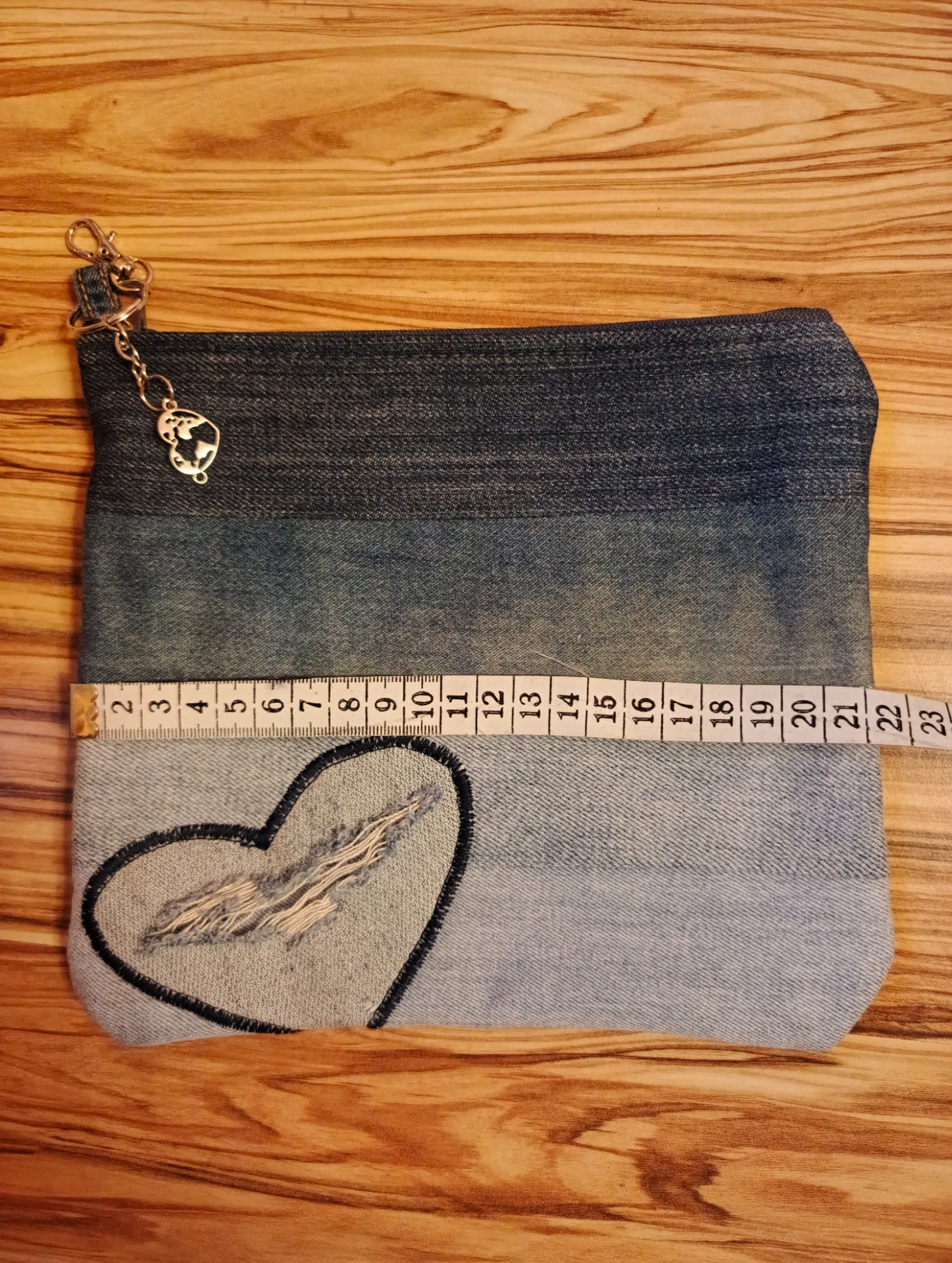 Noste své srdce hrdě a stylově! Tato taštička z projektu DÁRKOMAT® je důkazem, že i staré džíny mohou vyprávět nový, krásný příběh. Je ušita z několika odstínů recyklované džínoviny, které spolu vytvářejí harmonický celek, doplněný o výrazné, ručně vypracované srdce.
