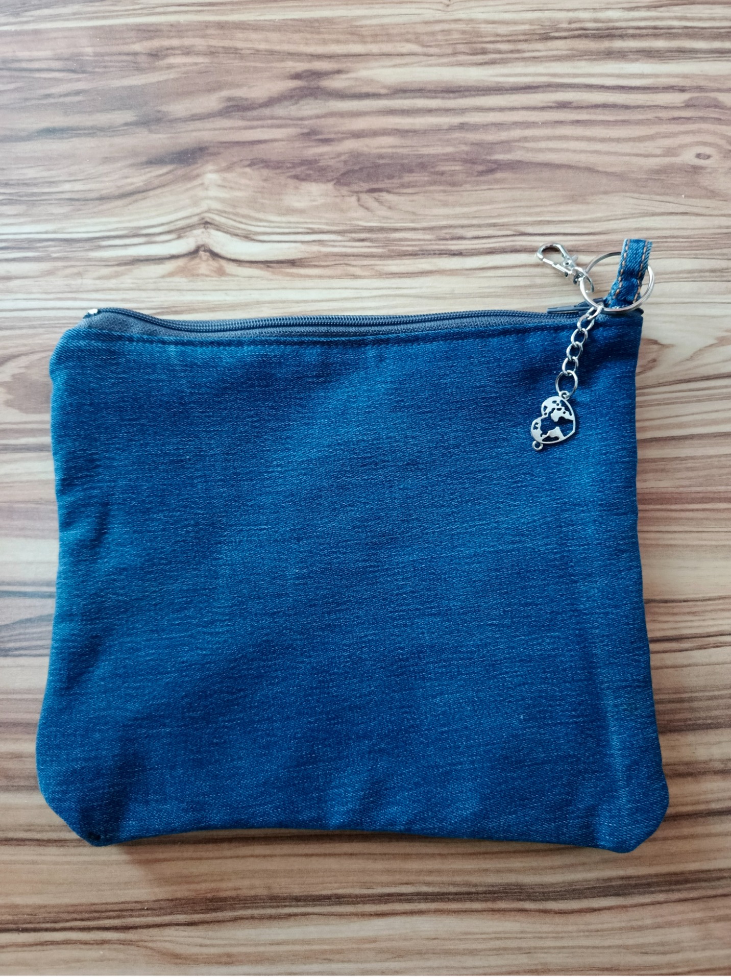Praktické detaily: Robustní zip, karabina s přívěskem ve tvaru zeměkoule/srdce pro snadné uchycení ke klíčům nebo v kabelce.