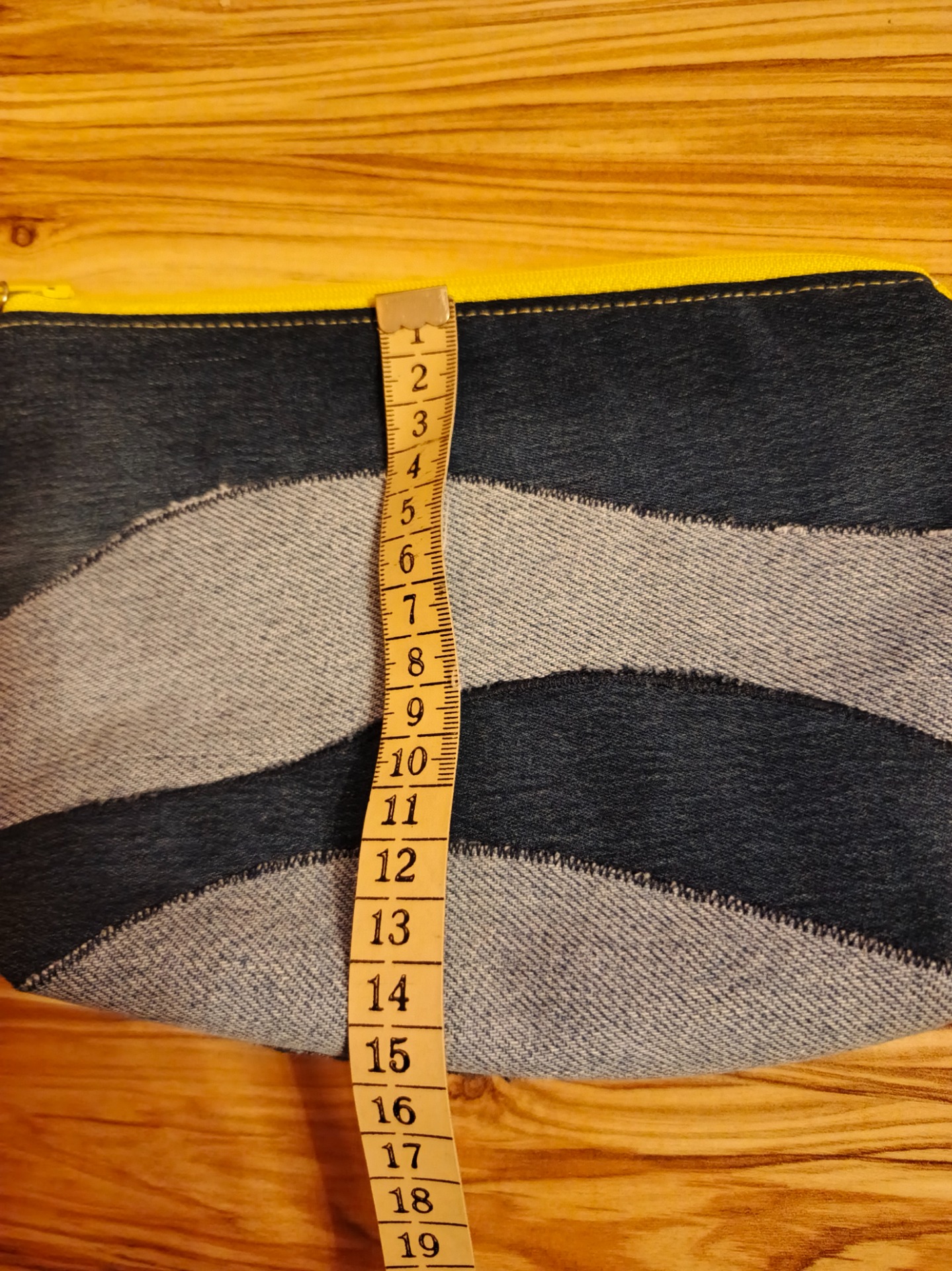 Materiál: Upcyklovaný denim, bavlna, kovový/plastový zip.